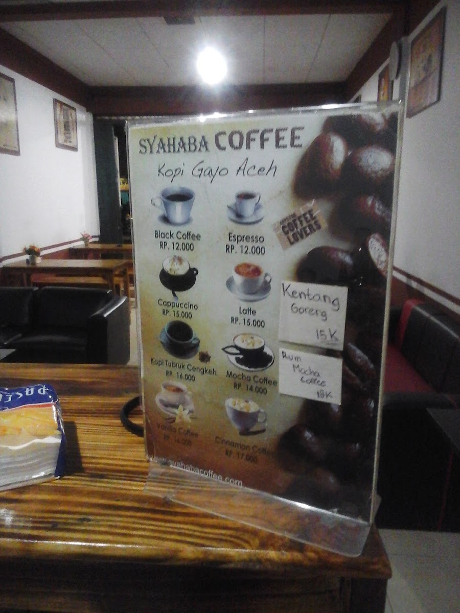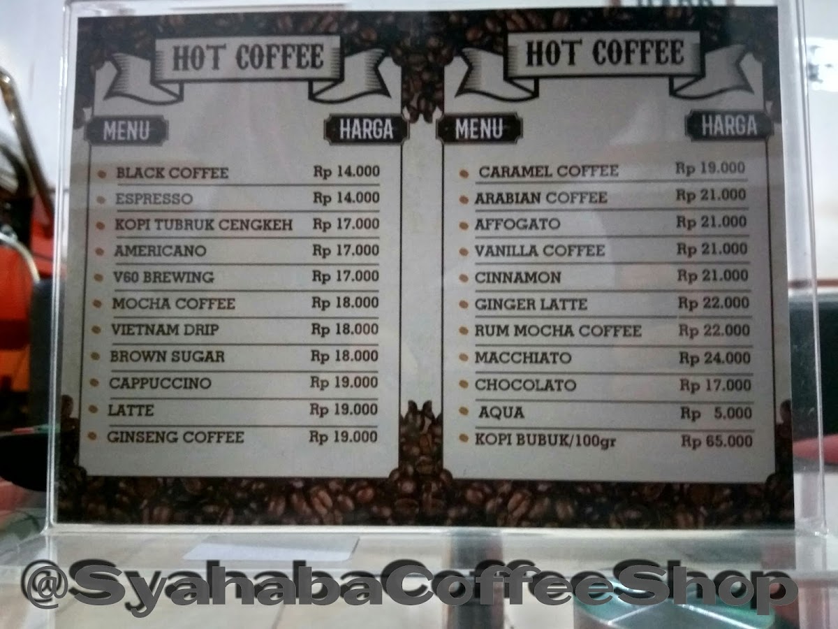 Syahaba Coffee Shop Menu